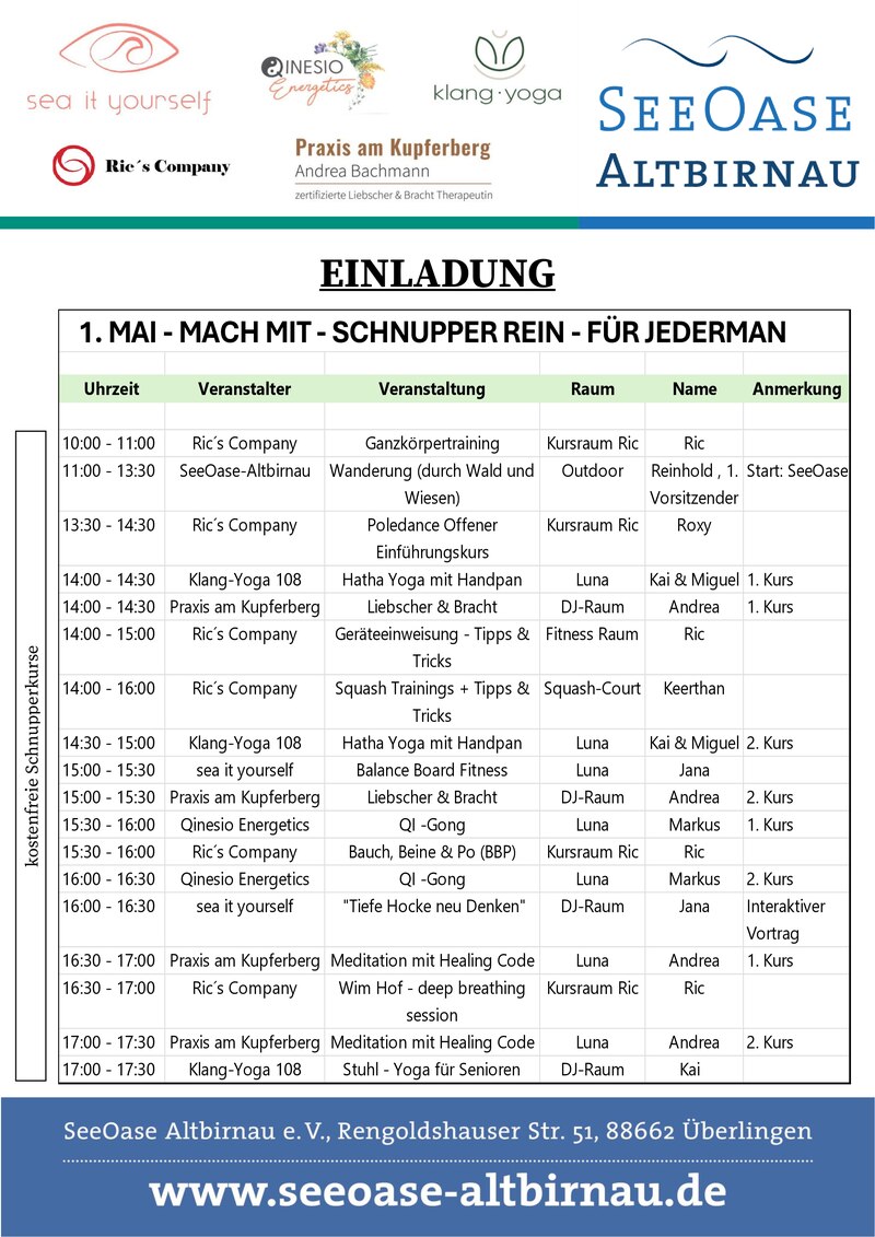 Der ehemalige Wellnesspark Überlingen ist jetzt eine Oase für Körper, Geist und Seele in Altbirnau am Bodensee – die SeeOase Altbirnau e.V. Das Haus ist von uns zum Teil schon renoviert worden und nach und nach schaffen wir Räume für ein lebendiges Miteinander und individuelle Entfaltung durch ein ganzheitliches Angebot. Es laufen bereits spannende und informative Veranstaltungen sowie ein vielfältiges Kurs- und Fitnessprogramm.
