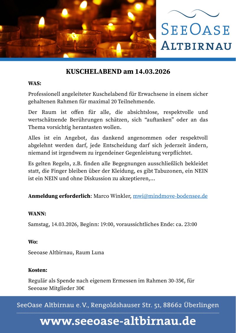 Kuschelabend am Samstag, 14. März um 19 Uhr