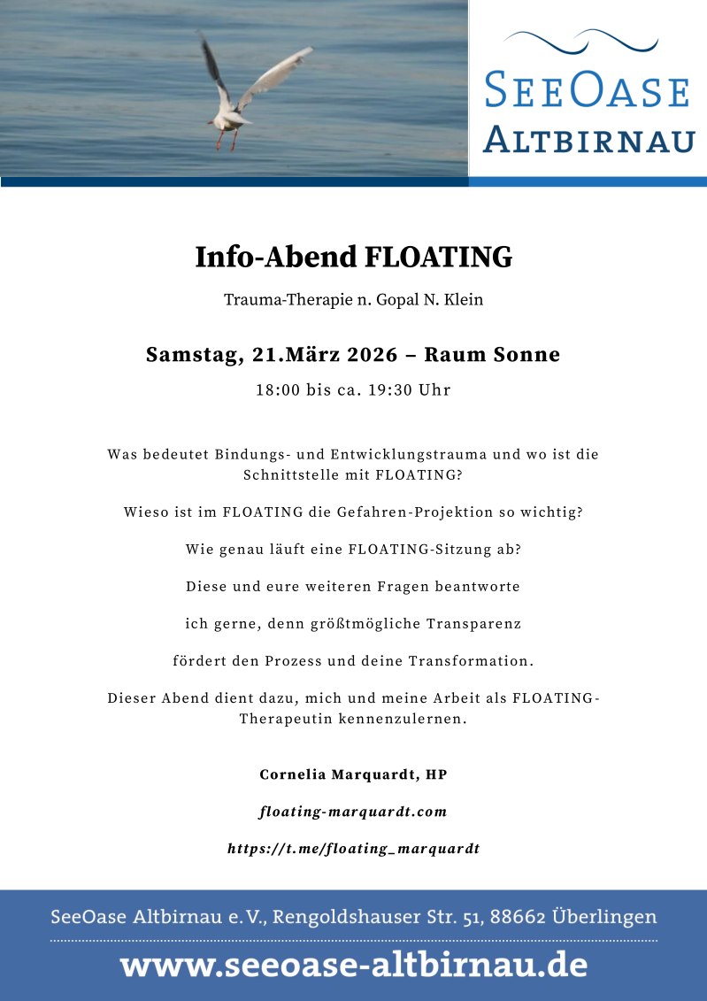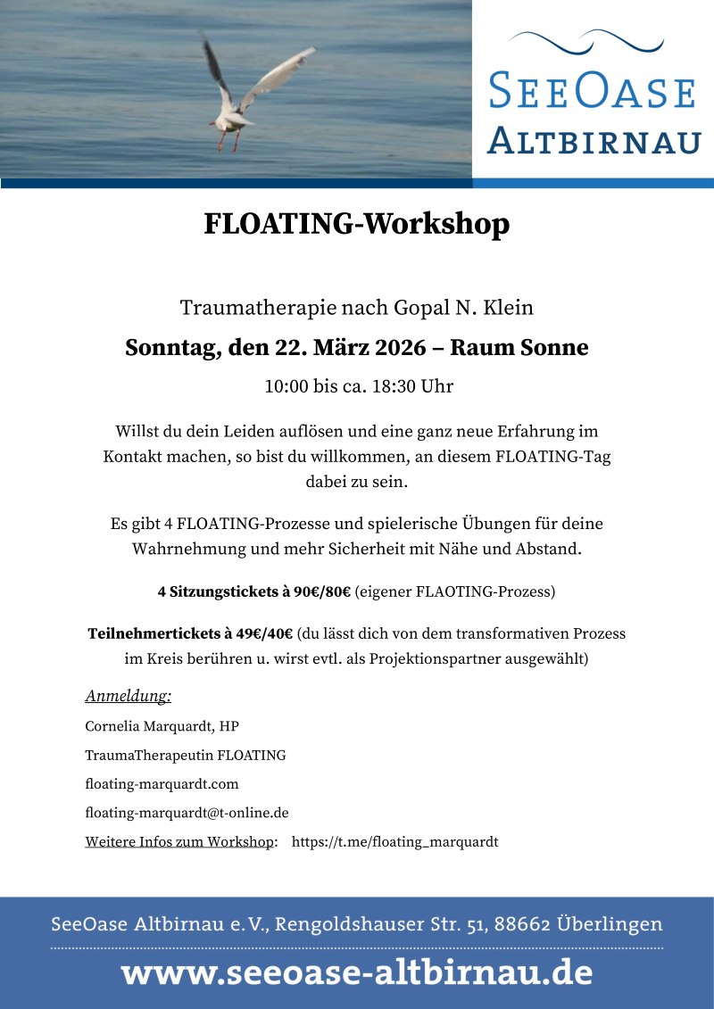 Floating-Workshop am Sonntag, 22. März von 10 bis 18:30 Uhr